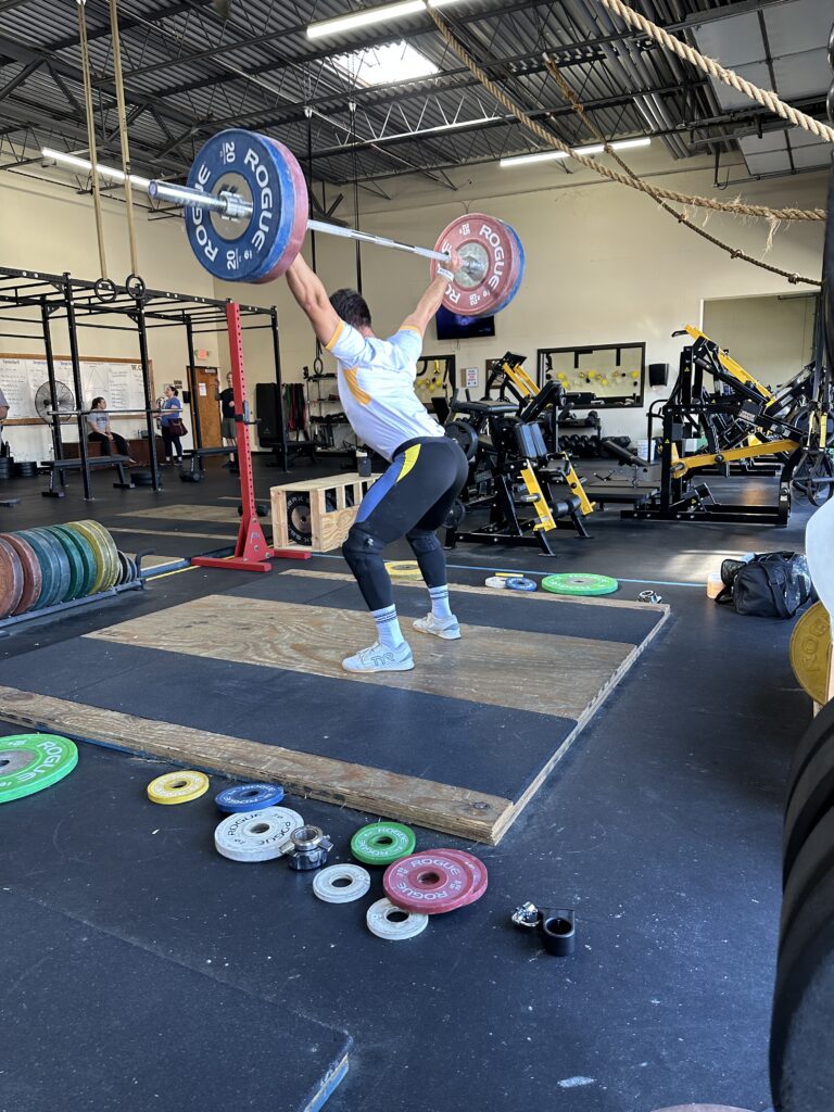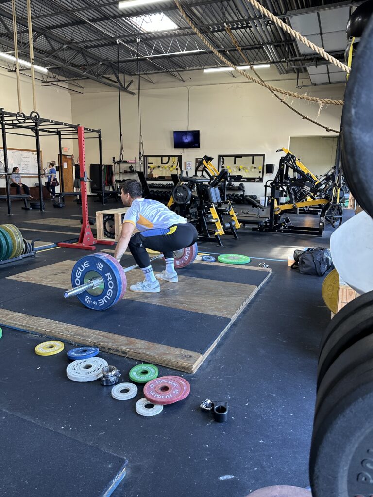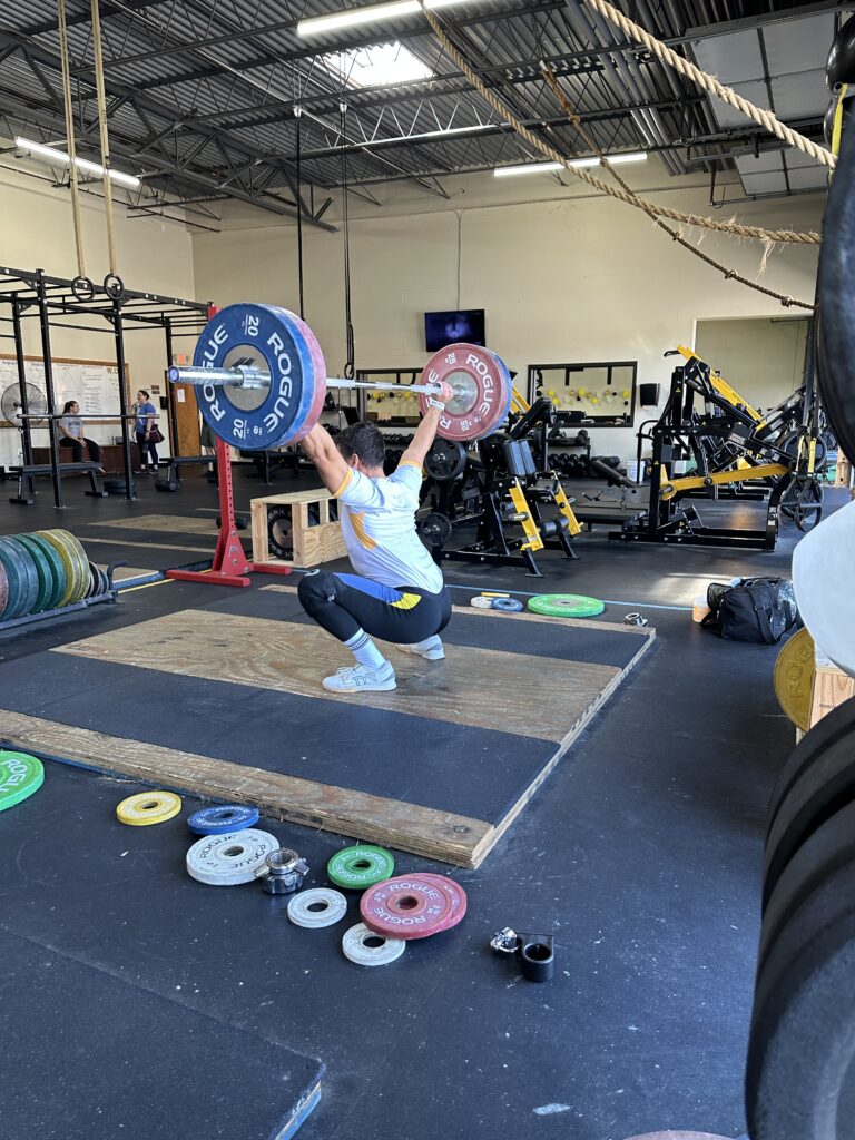 On Sunday I went to the gym where I proceeded to continue to be the old lady that doesn’t lift very much, but provides good conversation. I know many of the famous-ish lifters in the weightlifting world, so I can insert myself into conversations there. And I can continue to be amazed at the practice lifting that people do. This is 110 kg snatch, that you basically yank off the ground and immediately throw over your head.