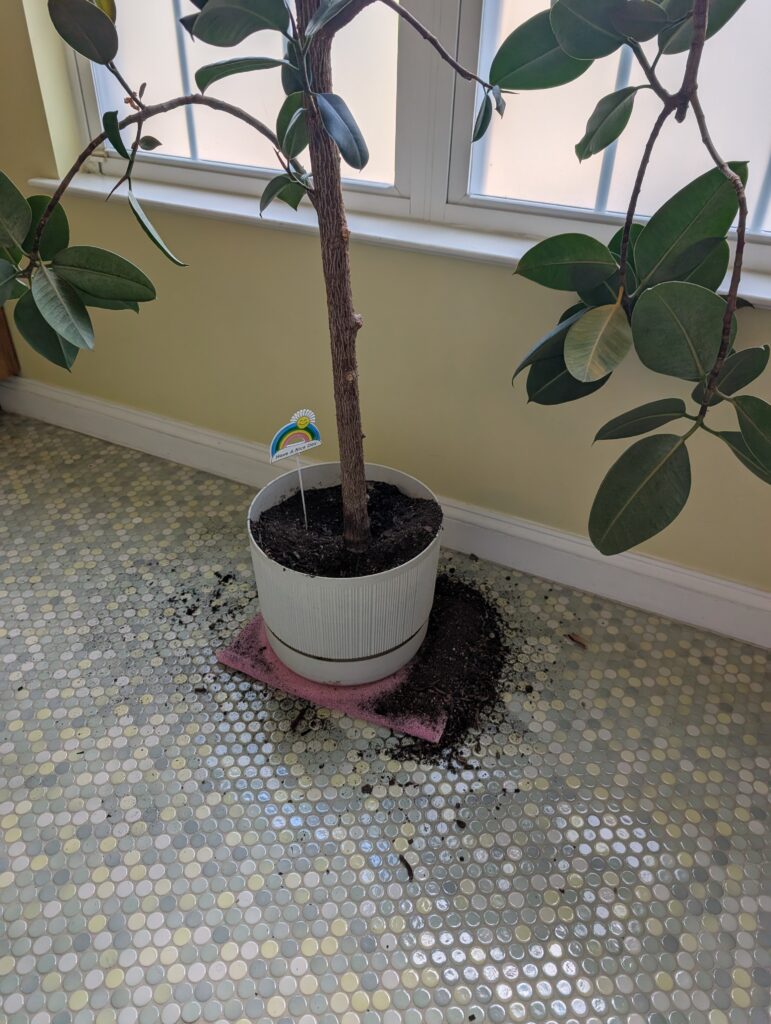 My hobbies are colliding. Zeke found this plant, appeared to poop in it and left a huge dirt pile around it. And then it smelled terribly and I tried to root around to find the poop and couldn’t find it and then concluded that Elka had found it and ate it. Jeremy does not like this situation. I don’t either, but it doesn’t bother me as much for whatever reason. Anyways, I put the plant on a 12-14″ stool thinking that that would deter the cat, but no. The cat sprang up into it and started to do its business in it and I had to shoo it away. This is the most sentimental plant in the house, I have memories of this plant when I was 4 years old. So I’m hoping not to kill this plant.