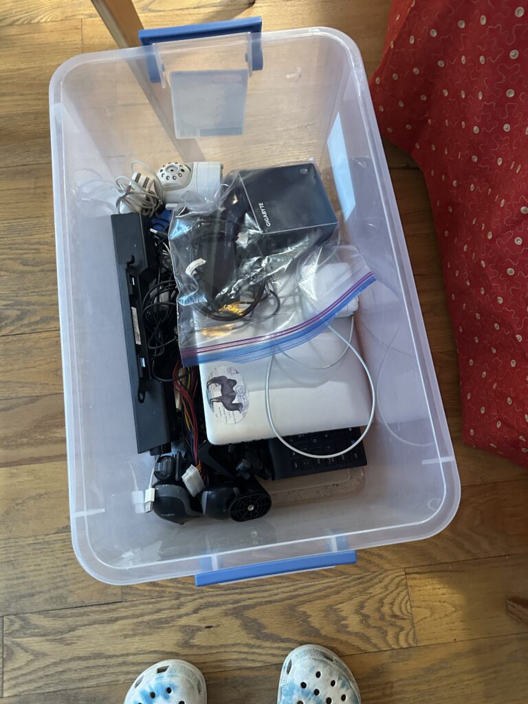 Jeremy, unlike me, has two weeks off of work. The office just closed down, no need to use vacation time. He’s been busy as a bee at home, organizing the battery drawer, sorting through our electronic trash. He’s going faster than I can deal, because I usually do the final getting it out of the house, but I’m behind.