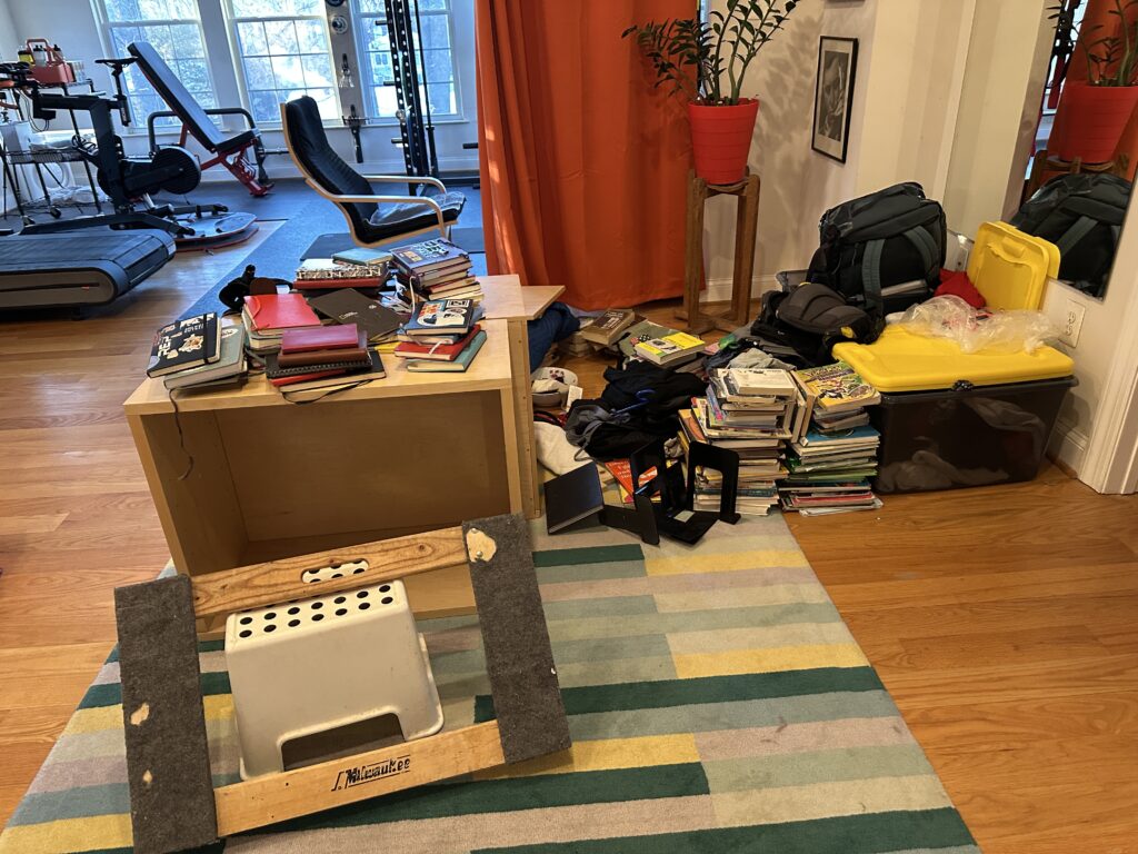 I’m also cleaning out our bedroom (again). This time with a clothes focus which involved emptying a bookshelf full of books. My new dresser comes next week…