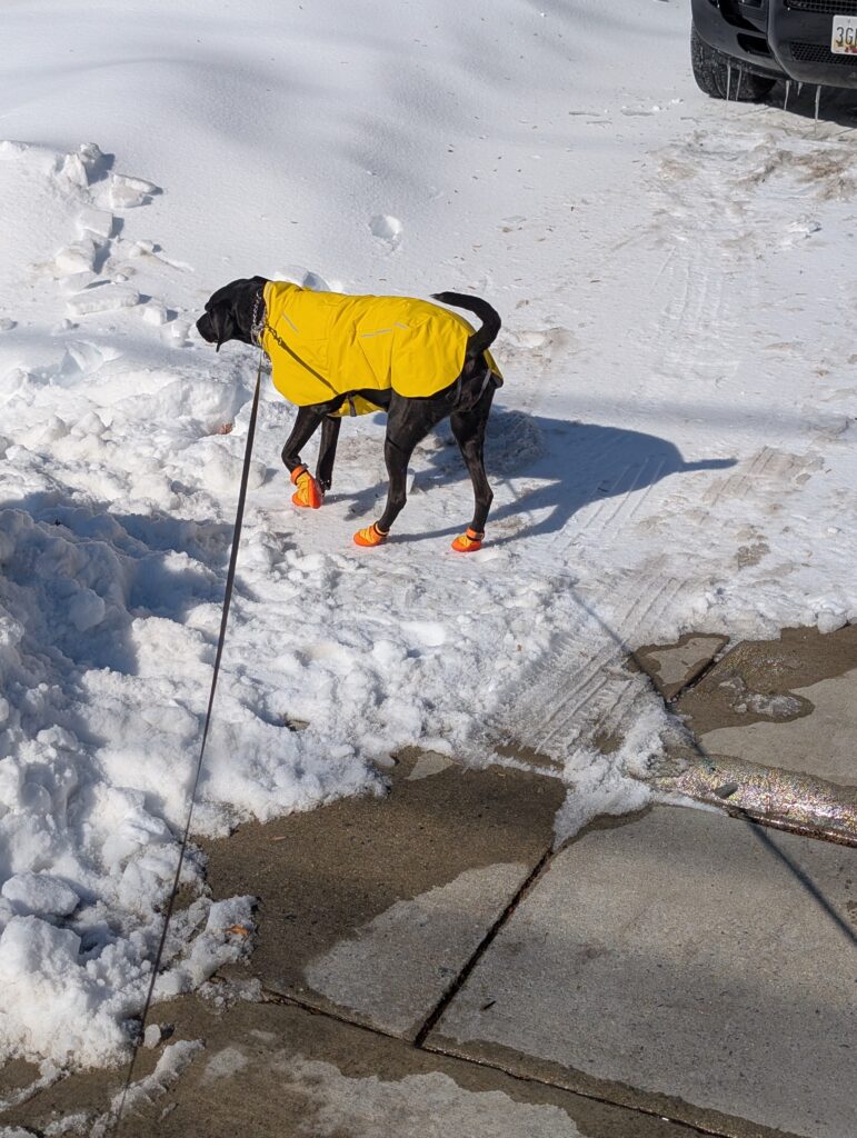 We got Elka these booties because her feet seem to be extra sensitive to salt on the roads.